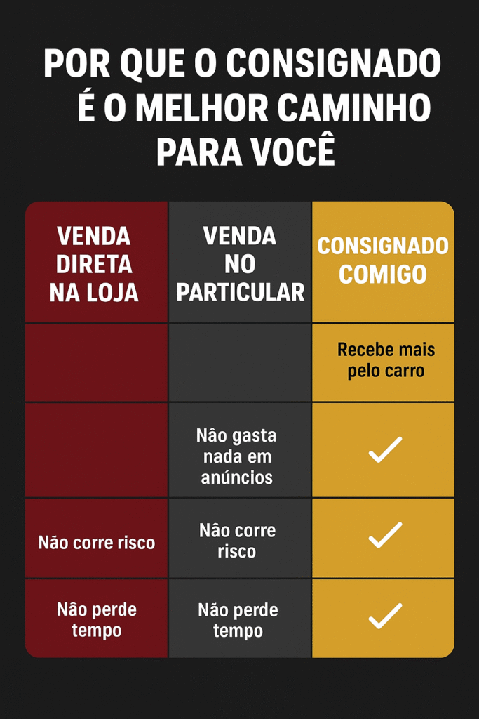 Exemplo Real: Preparar Um Carro de R$ 60 Mil Pode Custar de R$ 2.000 a R$ 4.000. Vendendo Direto, o Dono Paga do Bolso; No Consignado, a Loja Paga Esse Custo Diluindo Nos (8%) No Próprio Acerto da Venda.