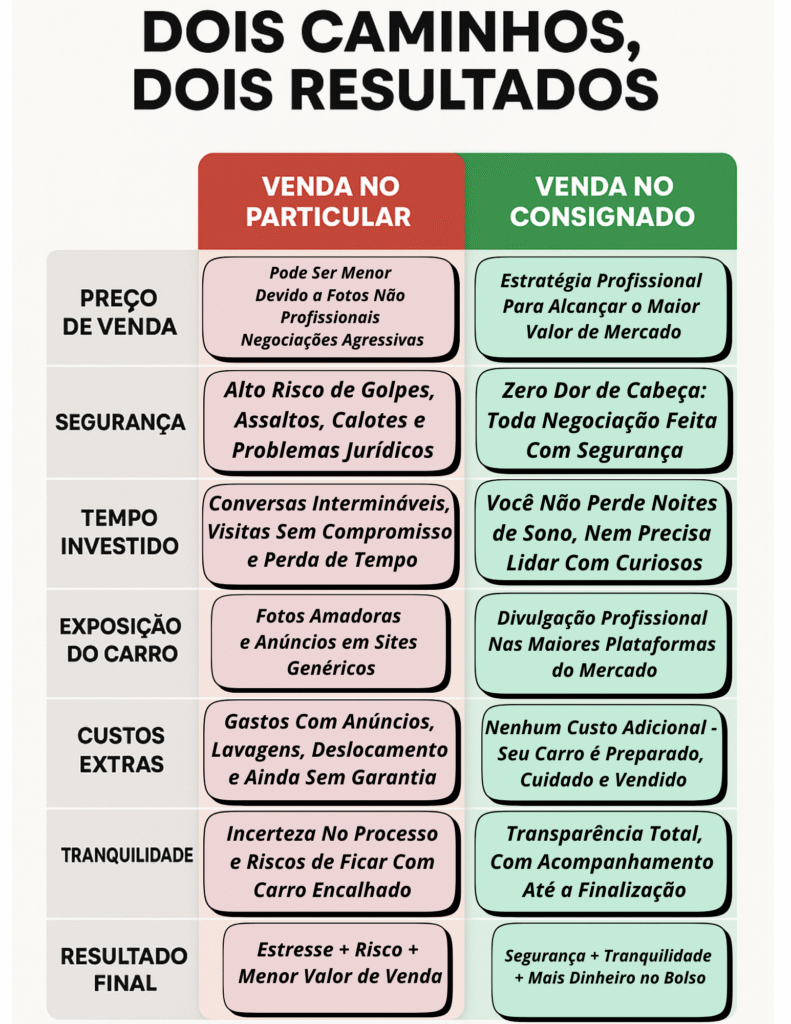 Todo Carro Desvaloriza Com o Tempo — Dentro ou Fora do Consignado. A Diferença É Que Na Loja o Carro é Precificado Corretamente Para Girar, Evitando Ficar “Encalhado”.
