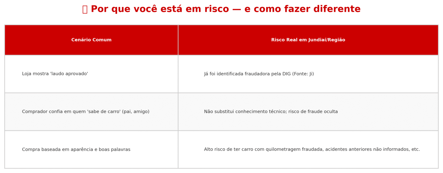 Imagine Acreditar no “Laudo Aprovado” da Loja ou Na Opinião de Alguém que “Entende de Carro” Só Porque é Seu Pai, Irmão, Esposo(a) ou Amigo(a) — Mesmo que Essa Pessoa Não Saiba de Verdade o Que Está Inspecionando.